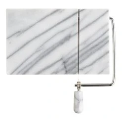 World Market Small Round Wood and White Marble Paddle Cutting Board