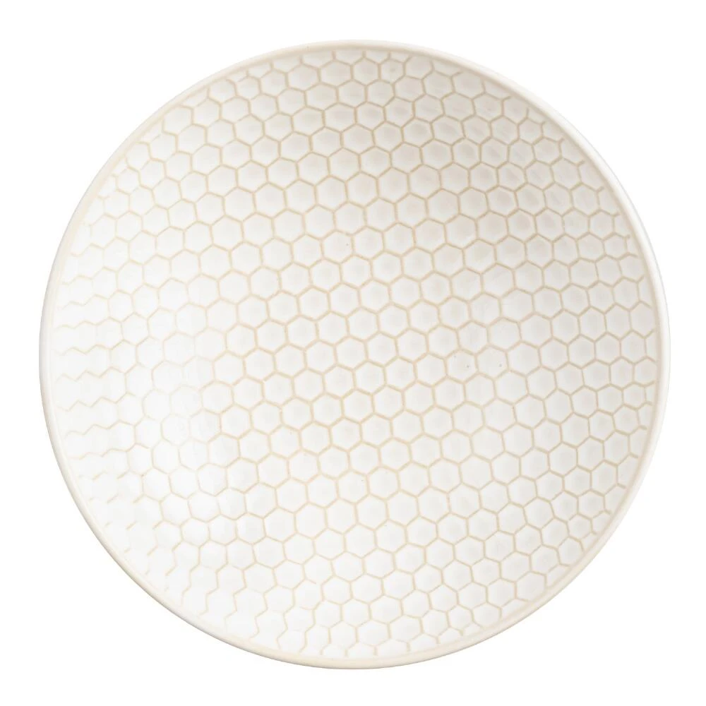 Bring a casual café vibe to mealtimes with this chic stoneware serving bowl. In a textured off-white honeycomb design, it mixes beautifully with our other stoneware pieces to create a uniquely dimensional table for everyday meals or entertaining.