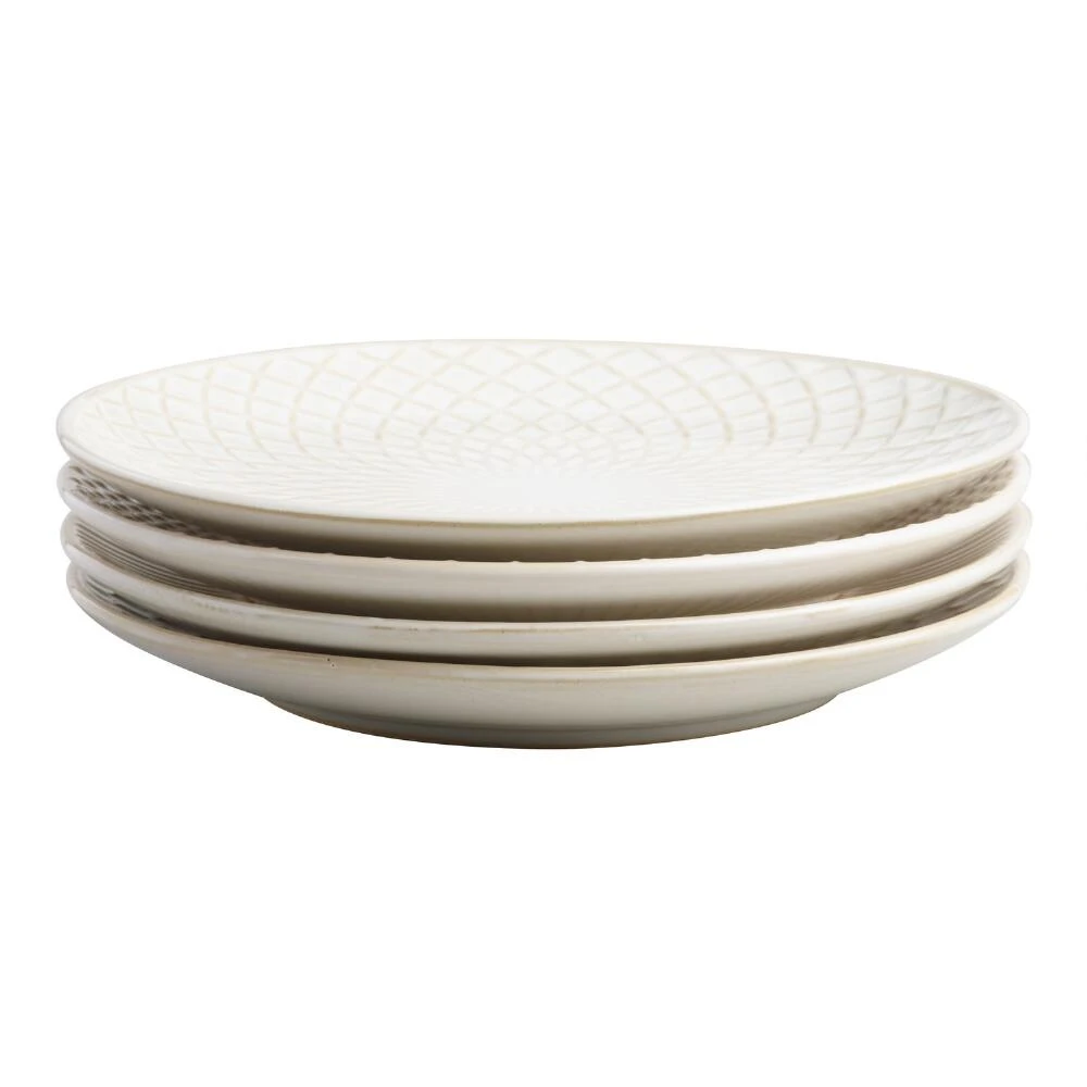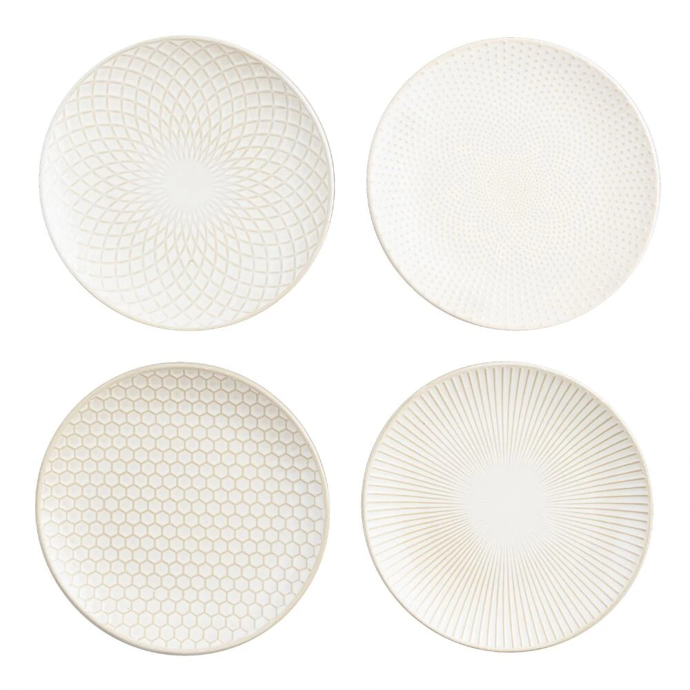Bring a casual café vibe to mealtimes with these chic stoneware salad plates. In four textured off-white designs, they mix and match beautifully with our other stoneware pieces to create uniquely dimensional place settings for everyday meals or entertaining.