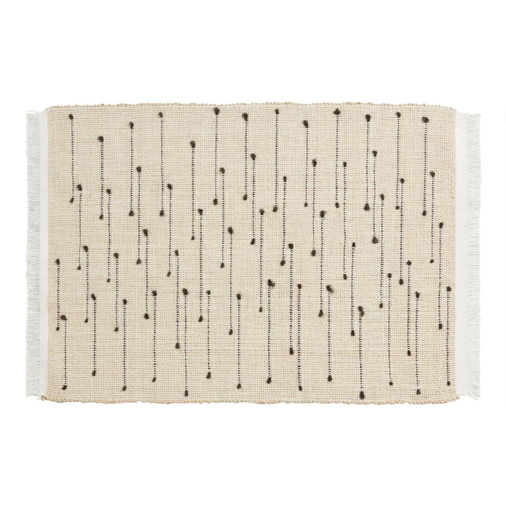 Bring elegant, arresting style to the table with our fringe-lined ivory placemats. A textural blend of cotton and jute, they feature a woven stripe-and-dot pattern in bold black.