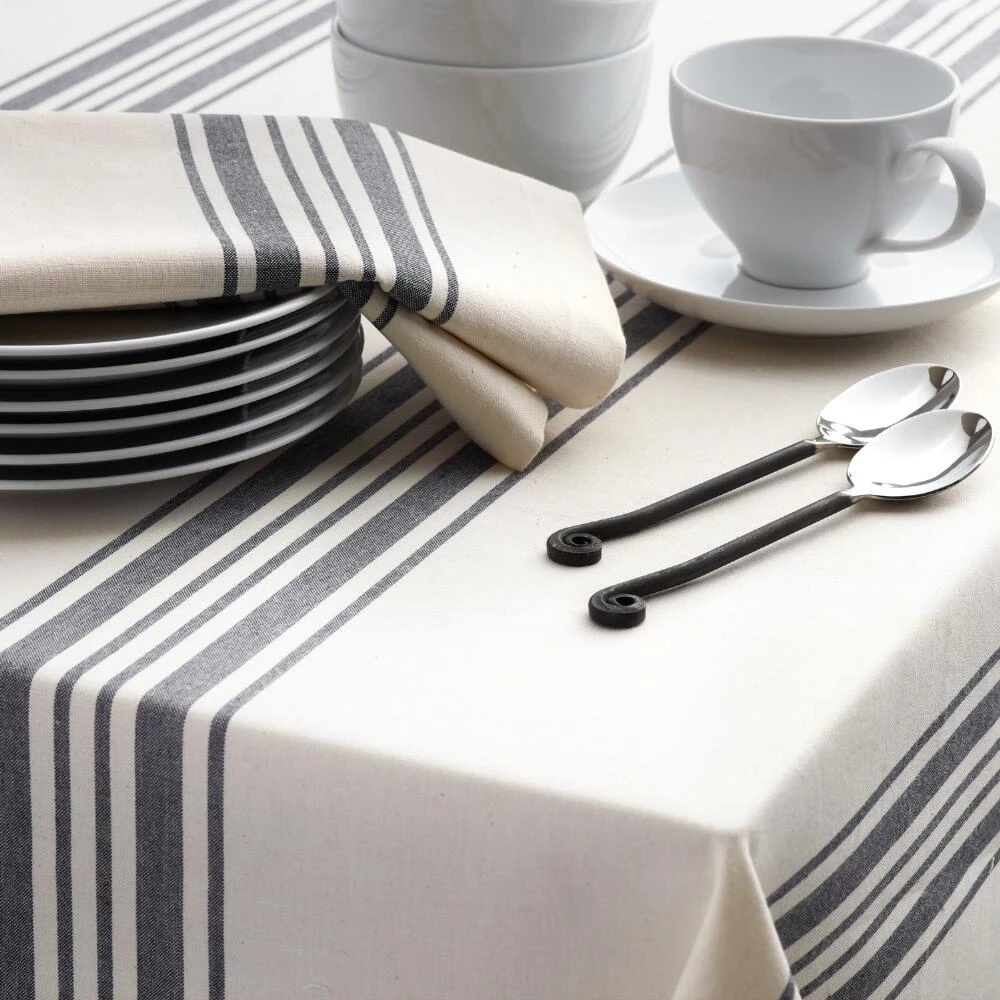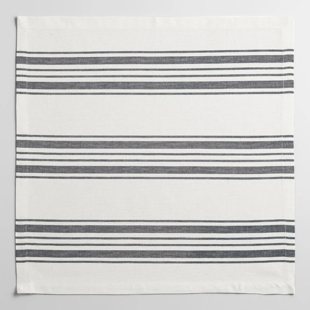 Perfect for everyday use, our classic cotton napkins feature black French-style stripes set against a natural background. Pair them with our coordinating tablecloth, table runner and placemats for a put-together look at a can’t-miss price.