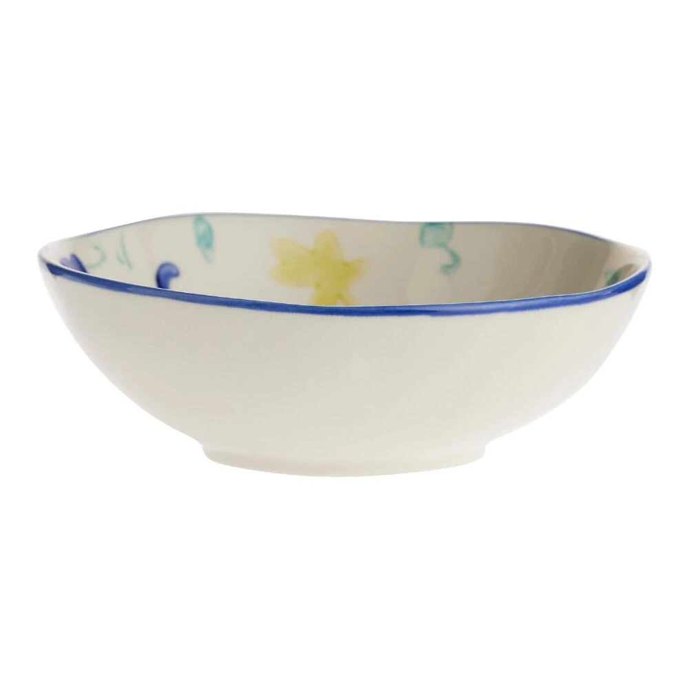 Hand-painted with care, this soup bowl gives your place setting a countryside feel with whimsical florals on the interior. Made of organically shaped stoneware with cheerful pops of chartreuse, blue and aqua, it has a perfectly rustic, mix-and-match appeal.