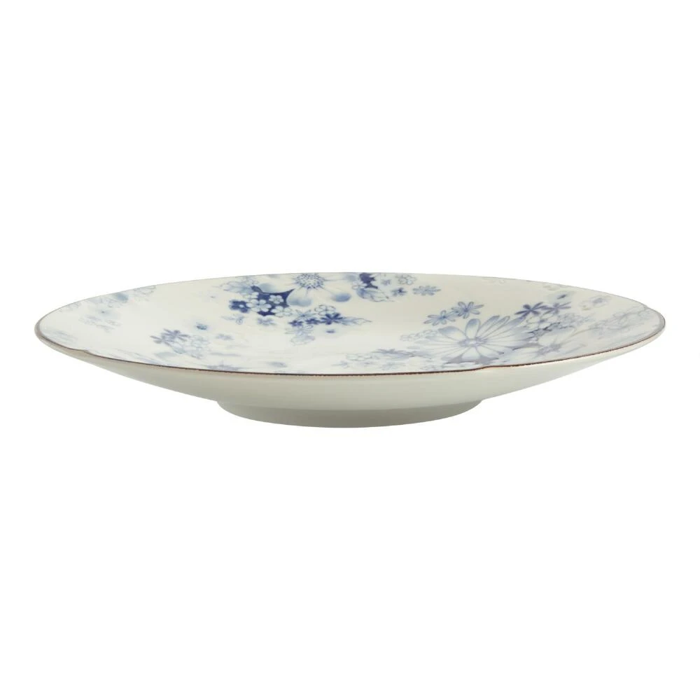 This porcelain dinner plate makes a sophisticated addition to your current place settings. Taking its cue from traditional Japanese designs that have stood the test of time, the ornate white and blue pansies are sure to enliven your everyday or occasional dining experience.