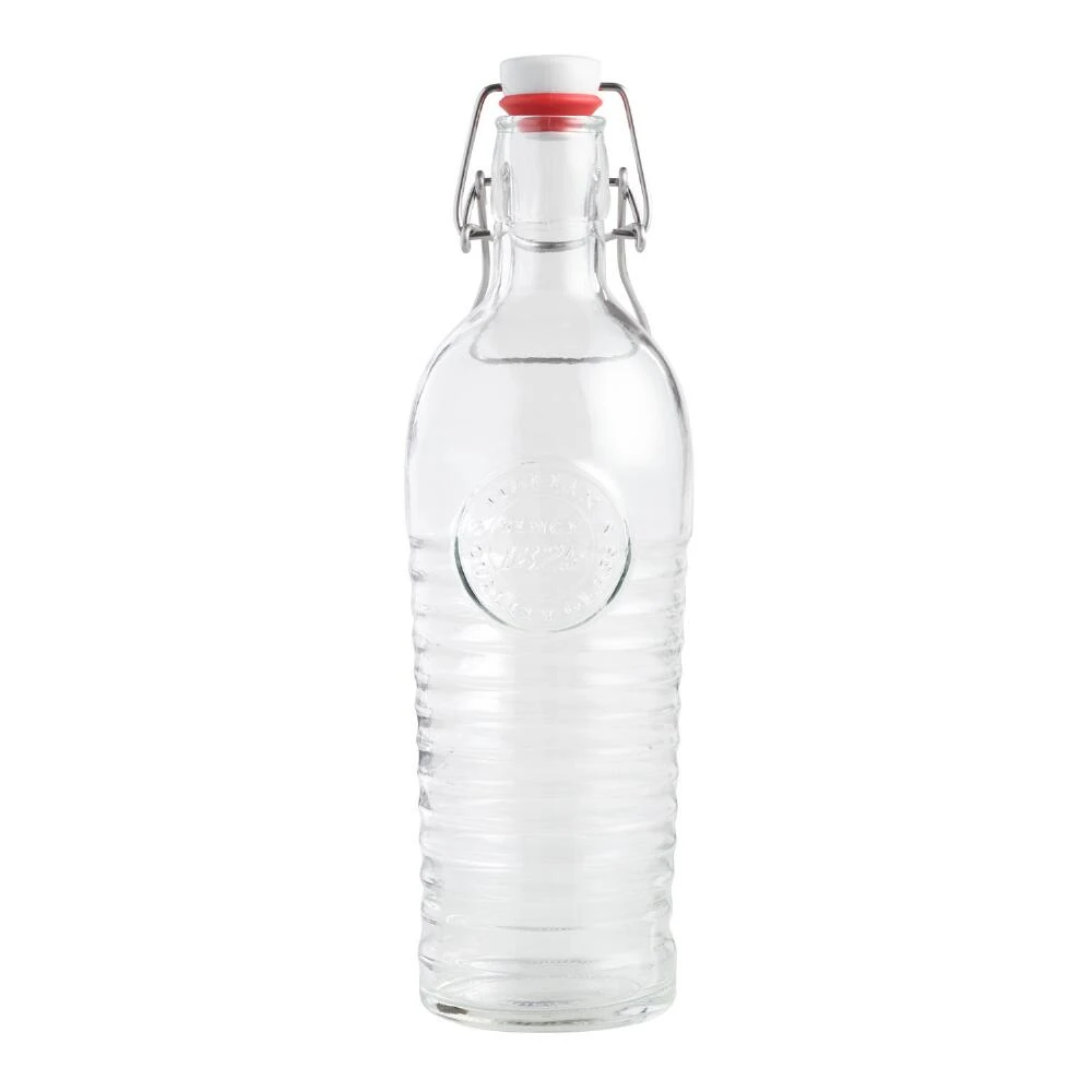 We brought our official Bormioli Rocco bottle back from Italy, where it’s commonly used to store, serve and gift high-quality oils, vinegar and even homemade wine. Embossed with an authentic seal of quality and a textured ring pattern that provides an easy grip, this refined bottle is topped with an airtight clamp lid.