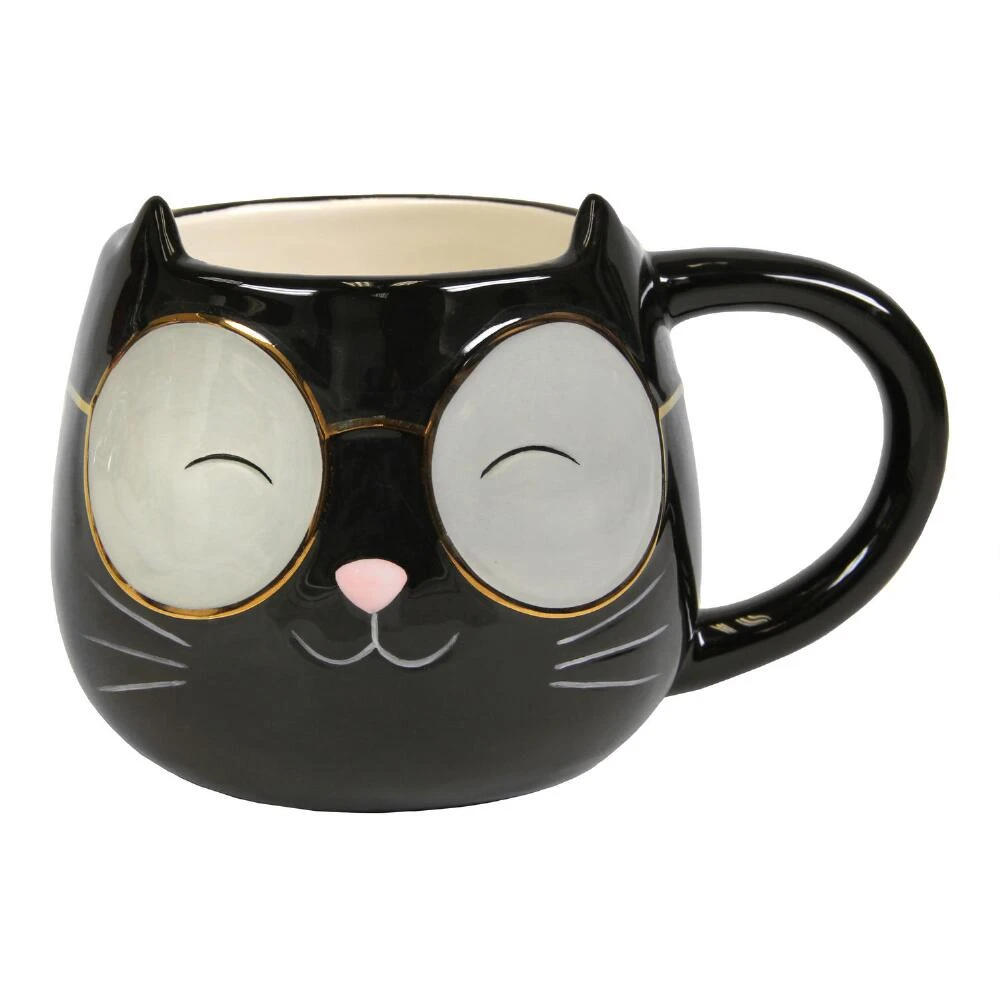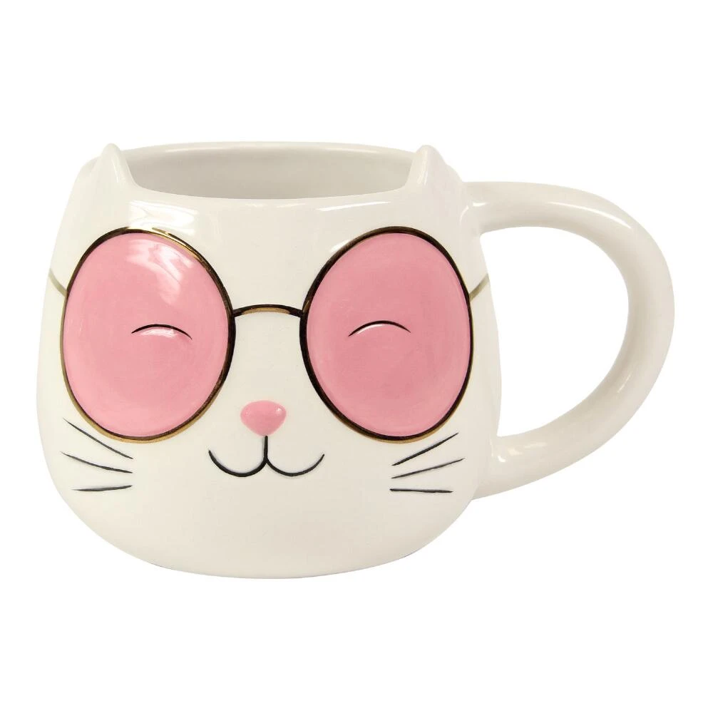 Enjoy your morning coffee with the coolest cat around. Our figural mug in the shape of a kitty sporting oversized sunglasses comes in your choice of black or white. It also makes for the purr-fect gift for your favorite feline-loving friend.