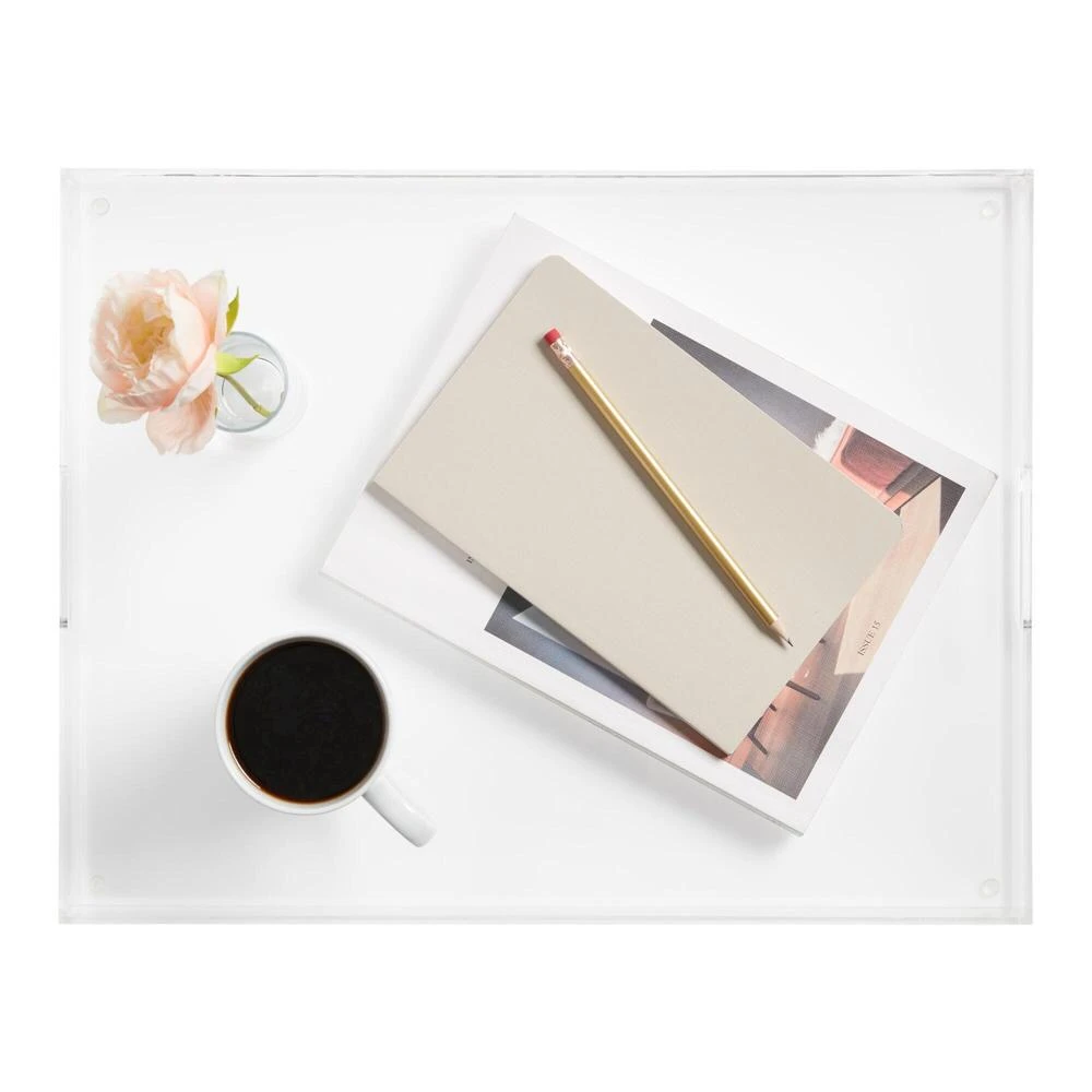 Our sleek acrylic drink tray adds a modern look whether you’re entertaining indoors or out. Its refined design lends a contemporary feel to any ottoman, bar cart or coffee table.