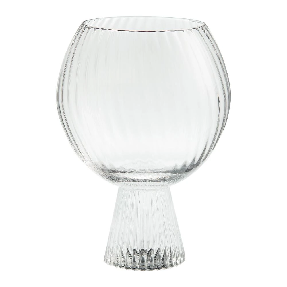 Serve and savor your favorite chilled and frozen cocktails in this goblet-style glass with a reflective ribbed design and a stunning silhouette. Made of hand-blown glass, this bar glass is a chic choice for casual get-togethers and toast-worthy occasions that cleans up easily in the dishwasher when the festivities are over.