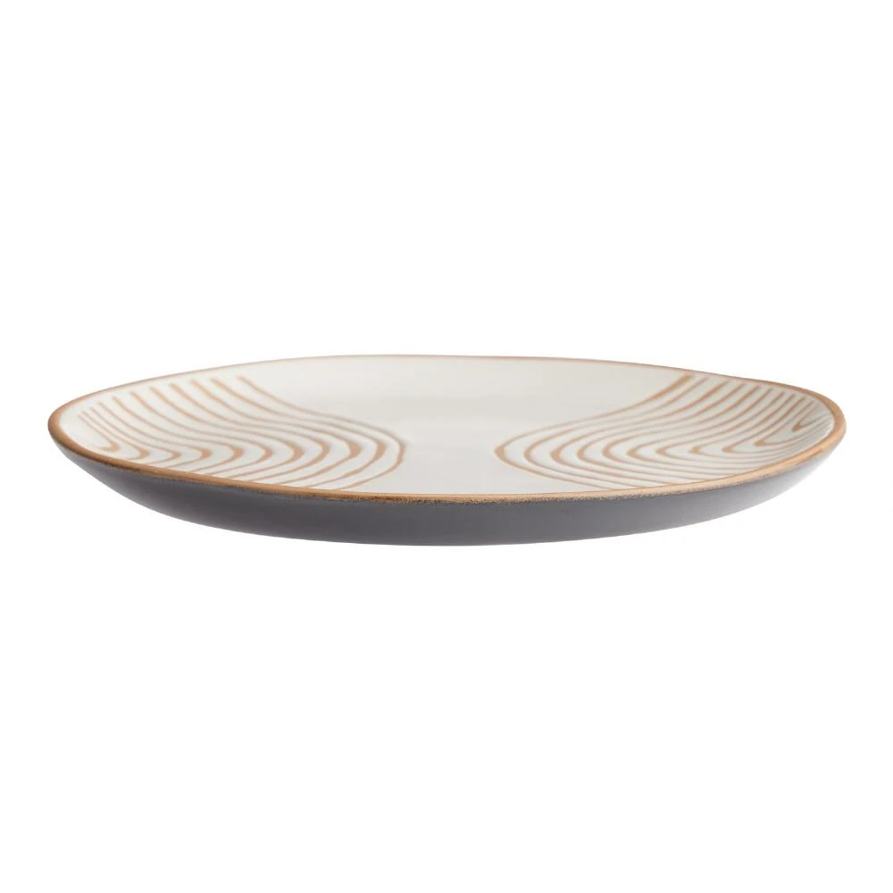 Our exclusive Drake salad plate serves up your home-cooked creations in a modern-meets-rustic fashion. Made with a cream matte glaze and natural clay wax-resist arch design, its down-to-earth details delight and impress during everyday meals or dinner parties.