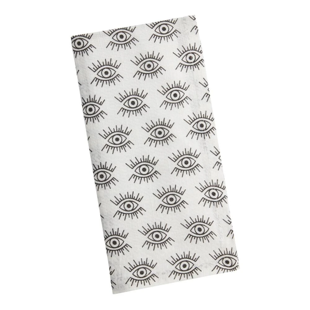 Bring a pop of color and pattern to your dining table with our cloth napkins. Adorned with rows of eyes on a white ground, these printed napkins are made of 100% cotton and are machine washable for convenient reuse meal after meal.