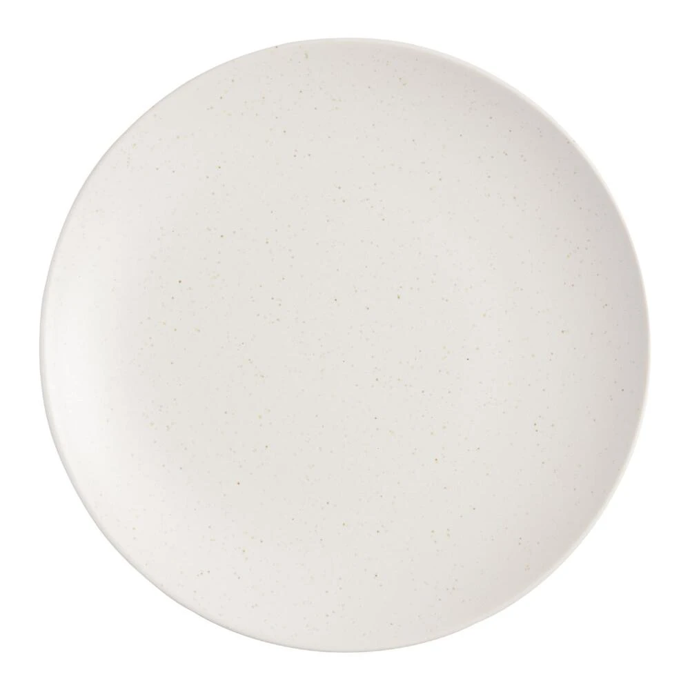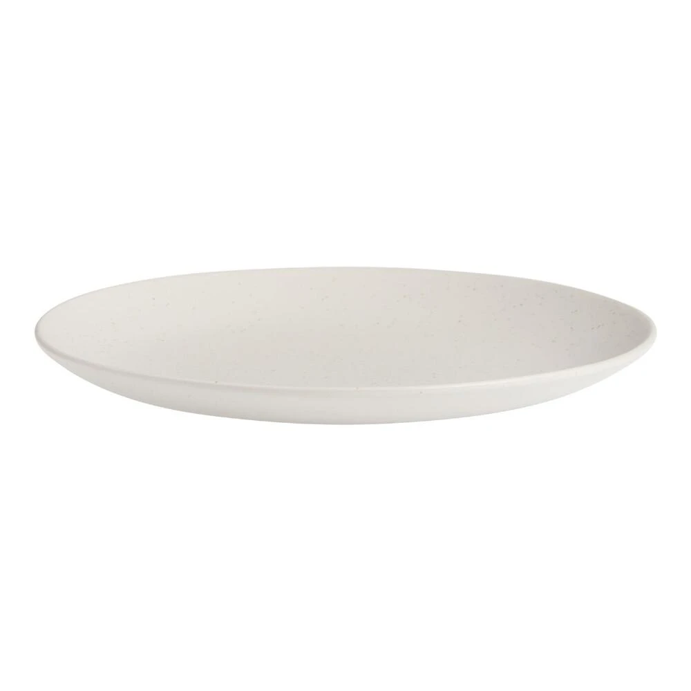 Our Flekk dinner plate has a creamy white glaze flecked with earth-toned speckles and a minimalist naturalistic aesthetic. The absence of extraneous flourishes and the clean-lined silhouette make this versatile large plate perfectly at home with any decor style, from boho-chic to modern.