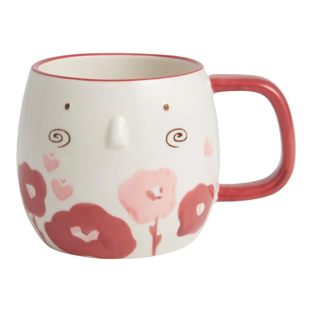 Sip on chai, coffee or a cozy cup of cocoa with our hand-painted Scandinavian-style mug. Designed with modern squared handles, botanicals and a face with a dimensional nose, this hygge staple is available in blue and red colorways. One for you and one for a loved one, this giftable cup looks cute on any floating shelf or simply inside a cupboard.