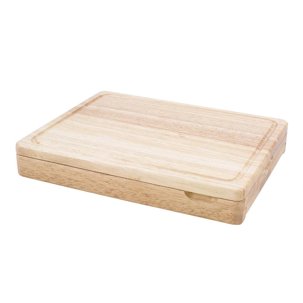 - Includes a 11″x 8.5″ x 1.5″ folding rubberwood cutting board, stainless steel hard cheese knife, cheese shaver, cheese fork and pointed-tip cheese slicing knife