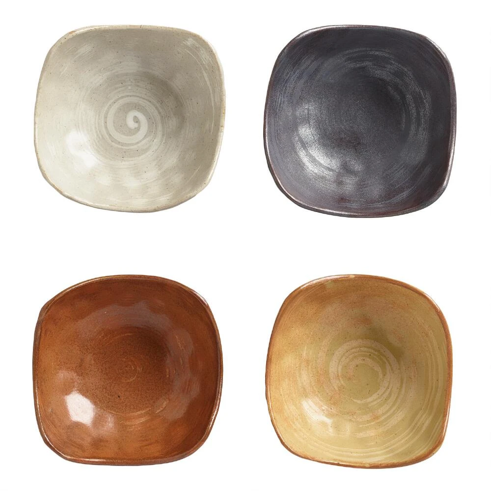 Set an elegant, tranquil table with our square bowl inspired by traditional Japanese design. Made of stoneware and organically textured, the set includes dishes in four earthy colors, each balanced atop three sturdy feet. Mix with your current place settings or match with other pieces from the collection for elevated entertaining and everyday dining.