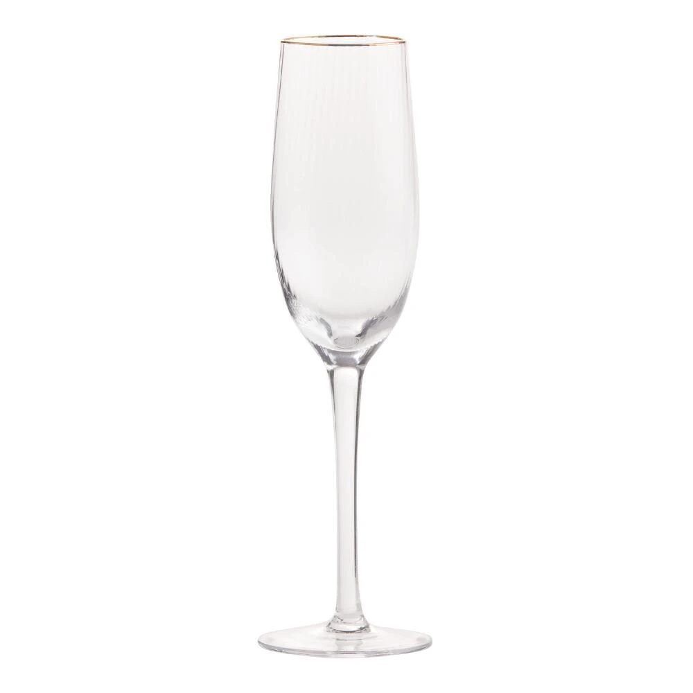 With metallic-gold rims for that just-right touch of luxe, this glass Champagne flute is embellished with a subtle ribbed texture for added sophistication. This stemmed drinkware adds new charm to chilled Champagne, Prosecco, Rosé and other sparkling wines.