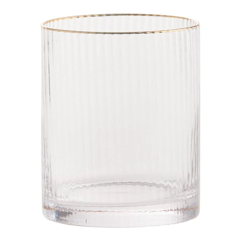 With a metallic-gold rim for that just-right touch of luxe, this cocktail glass is embellished with a subtle ribbed texture for added sophistication. A vintage-inspired classic, our whiskey glass is a refined vessel for your favorite spirits.