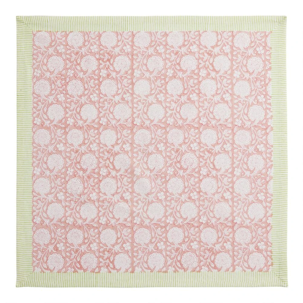 Bring a pop of color and pattern to your dining table with our vibrant cloth napkins from India. Adorned with a pink block-print pattern bordered in bright green, these lively hand-printed napkins are 100% cotton and machine washable for convenient reuse meal after meal.
