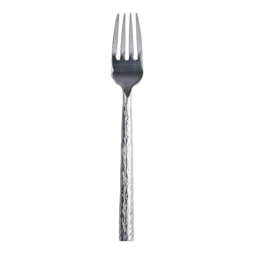 Formal or relaxed table settings shine brightly when the hammered texture of our stainless steel dinner fork catches the light. Comfortable in the hand with a balanced weight, these beautiful utensils are a joy to use.