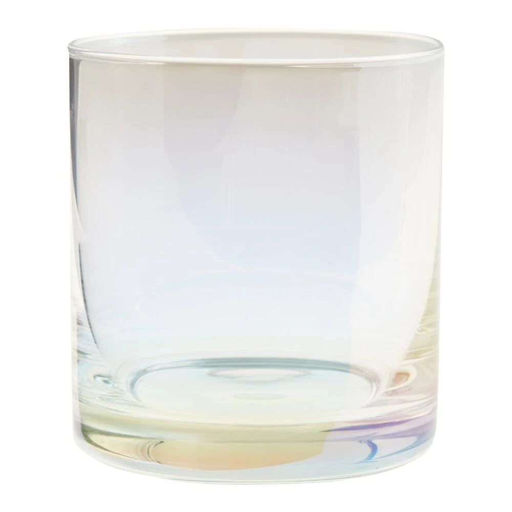 Light as air, but made to stand up to everyday celebrations, our sleek double old-fashioned glass has a pearlescent finish that shows off a full spectrum of color. The straight-sided shape provides the perfect fit in hand to swirl and sip your favorite cocktails.