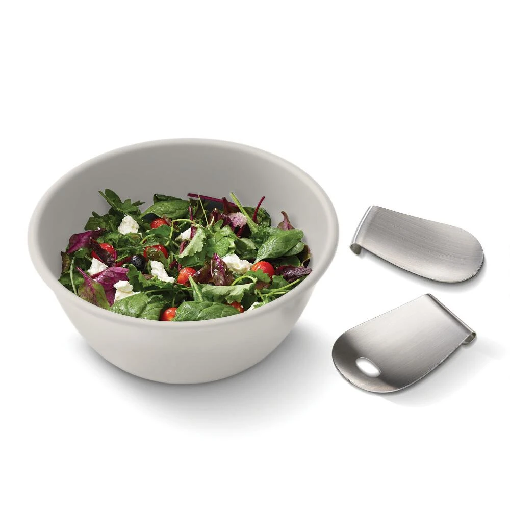 This Joseph Joseph serving set includes two salad servers that rest neatly on the rim of a large beige bowl so they’ll always be there when you need them. Bringing neutral modern design to the dinner table, the large serving bowl and sleek stainless-steel utensils are ideal for prepping, mixing and serving green salads, rice dishes, pastas or noodles and crowd-pleasing desserts.