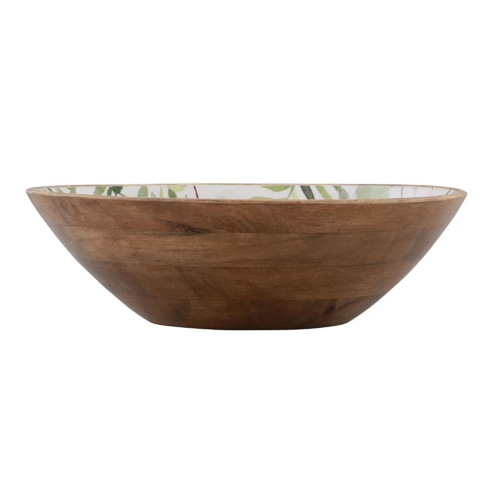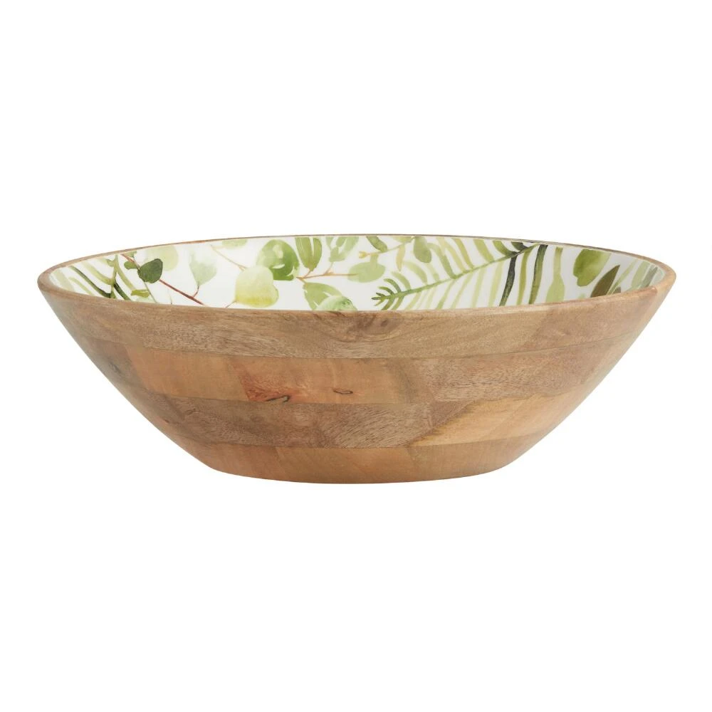 World Market Large Green Eucalyptus Enamel Wood Bowl