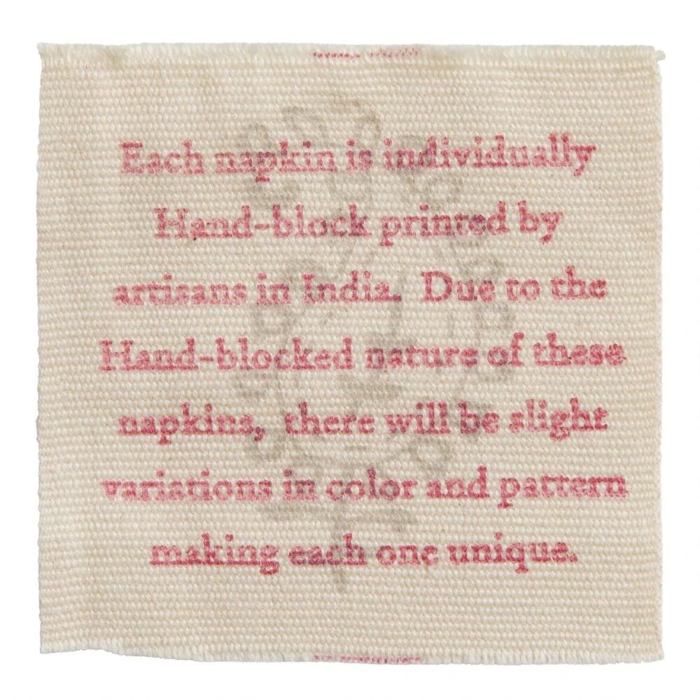 Bring a pop of color and pattern to your dining table with our vibrant cloth napkins from India. Adorned with a light orange and blue block print pattern with a contrasting border, these lively hand-printed napkins are 100% cotton and machine washable for convenient reuse meal after meal.