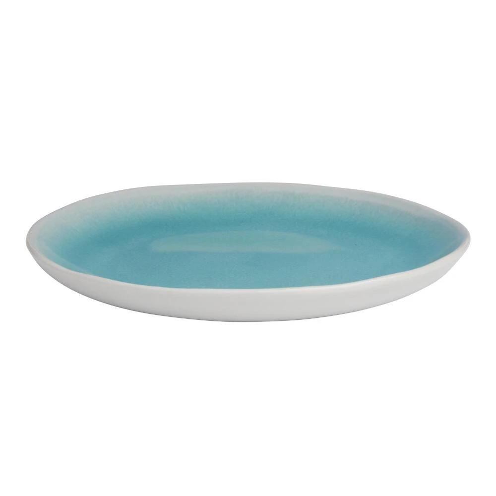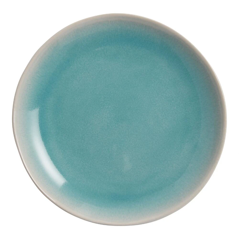 With an aqua interior and white exterior for charming contrast, this salad plate makes everyday dining or entertaining a cool coastal affair. Made of durable stoneware with a reactive glaze that ensures no two pieces are exactly alike, it adds a fresh pop of color to any place setting.