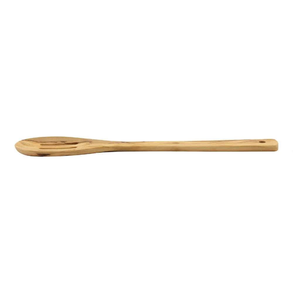 Featuring the gorgeous natural grain patterns of Italian olive wood, our exclusive slotted serving spoon is an elegant and durable kitchen essential. A beautiful utensil with a slotted head and a comfortable handle with a hanging loop, it’s perfect for mixing, serving and straining fats or liquids. This large cooking spoon is easy to clean and is safe to use with nonstick pots, pans or bakeware.