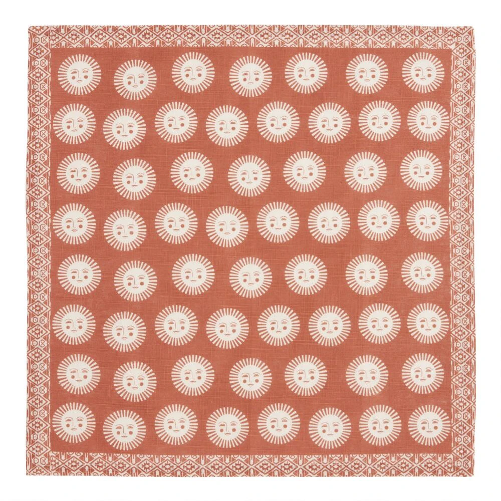 Featuring a Southwestern-inspired sun motif in white and orange, our exclusive 100% cotton napkins bring a pop of playful pattern and bright color to your table. Machine washable and easy to care for, they’re great for elevating everyday table settings.