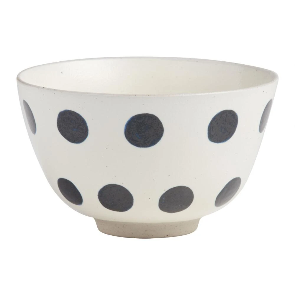 Large bold hand-painted polka dots give this ivory noodle bowl a stylish modern appeal that’s also just a bit playful. Lending a polished touch to any meal, this essential dinnerware piece is perfect for ramen, pho, curries and more. Choose between green and dark-blue polka dots, or mix and match your way to your ideal set.
