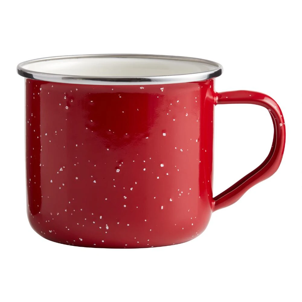 Made from steel, our lightweight mug has an enamel finish that’s scratch-proof and odor- and stain-resistant for long lasting use. Inspired by camping mugs, it’s decorated with a red speckled exterior with a contrasting white interior. This generously sized mug can hold up to 24 ounces of liquid, making it perfect for large servings of hot tea, cocoa or even soup.