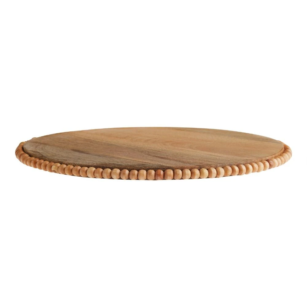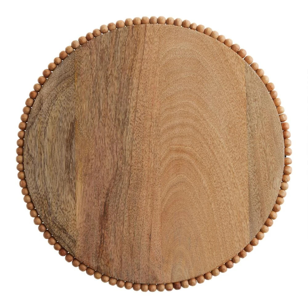Made in India of mango wood with carved beading around its edge, this charger plate features subtle variations in the wood grain that make each unique. We imagine this serveware adding visual interest to your rustic place settings, corralling frequently used spices and seasonings in the kitchen or displaying home decor and candles in a living space.