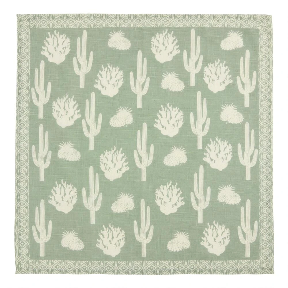 Featuring a desert cactus motif in sage green and white, our exclusive 100% cotton napkins bring a pop of fun pattern and subtle color to your table. Machine washable and easy to care for, they’re great for elevating everyday table settings.