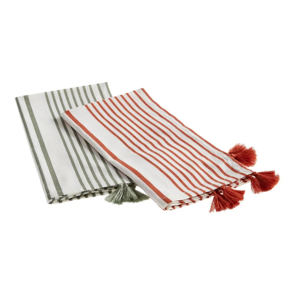 Bring a pop of color and pattern to your dining table with our cloth napkins. Available in your choice of red or green stripes, red floral and multicolor leaf designs, these screen-printed napkins are made of cotton-blend fabric and are machine washable for convenient reuse meal after meal.