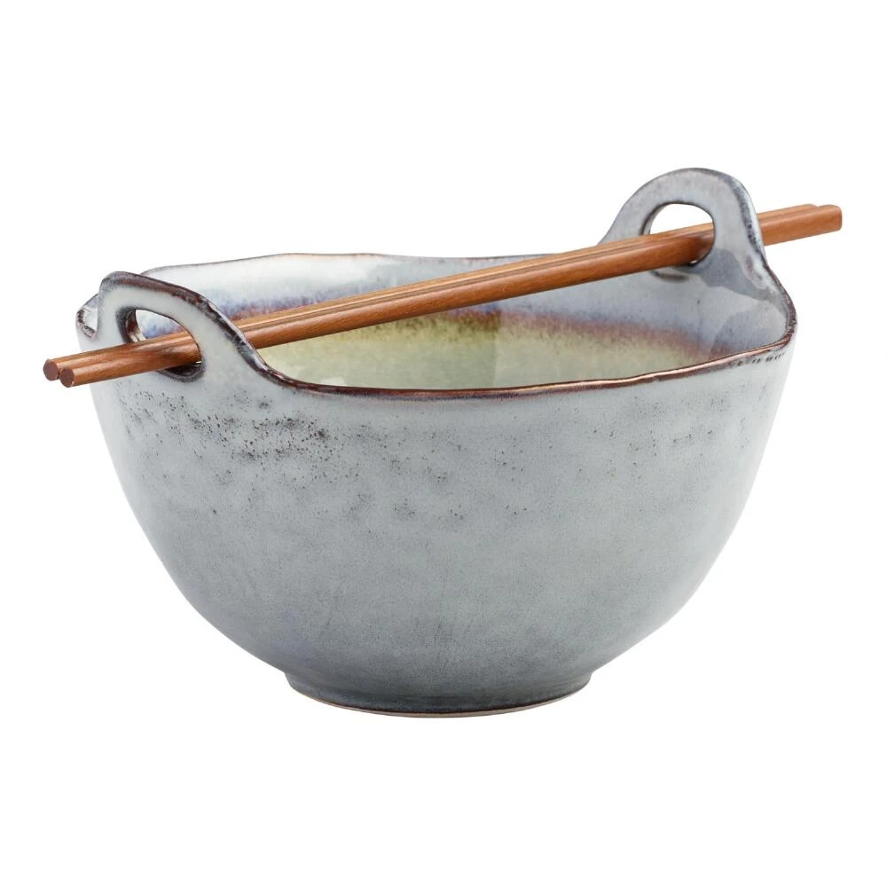 From rice to ramen, our noodle bowl – complete with chopsticks – is the perfect vessel for serving up Asian-inspired dishes when dining daily or entertaining. Featuring a variety of cool colors ranging from blue to green, the natural pooling of the reactive glaze creates an organic feel on each piece and ensures no two are exactly the same.