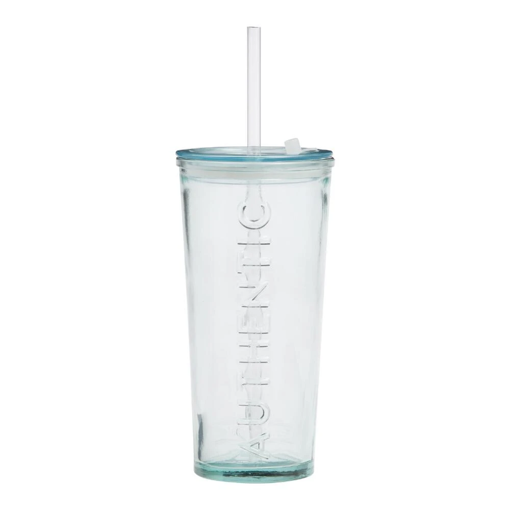 Handcrafted in Spain from 100% recycled glass, our to-go tumbler with a straw has an attractive green tint and a simple, weighty design. In your choice of designs, it’s perfect for sipping anything from a mojito to water to juice and is just the thing for outdoor entertaining.