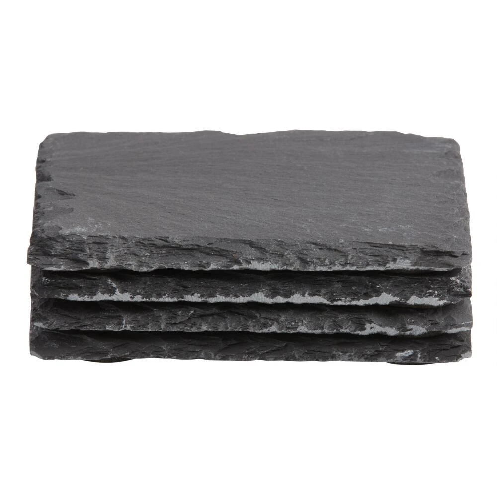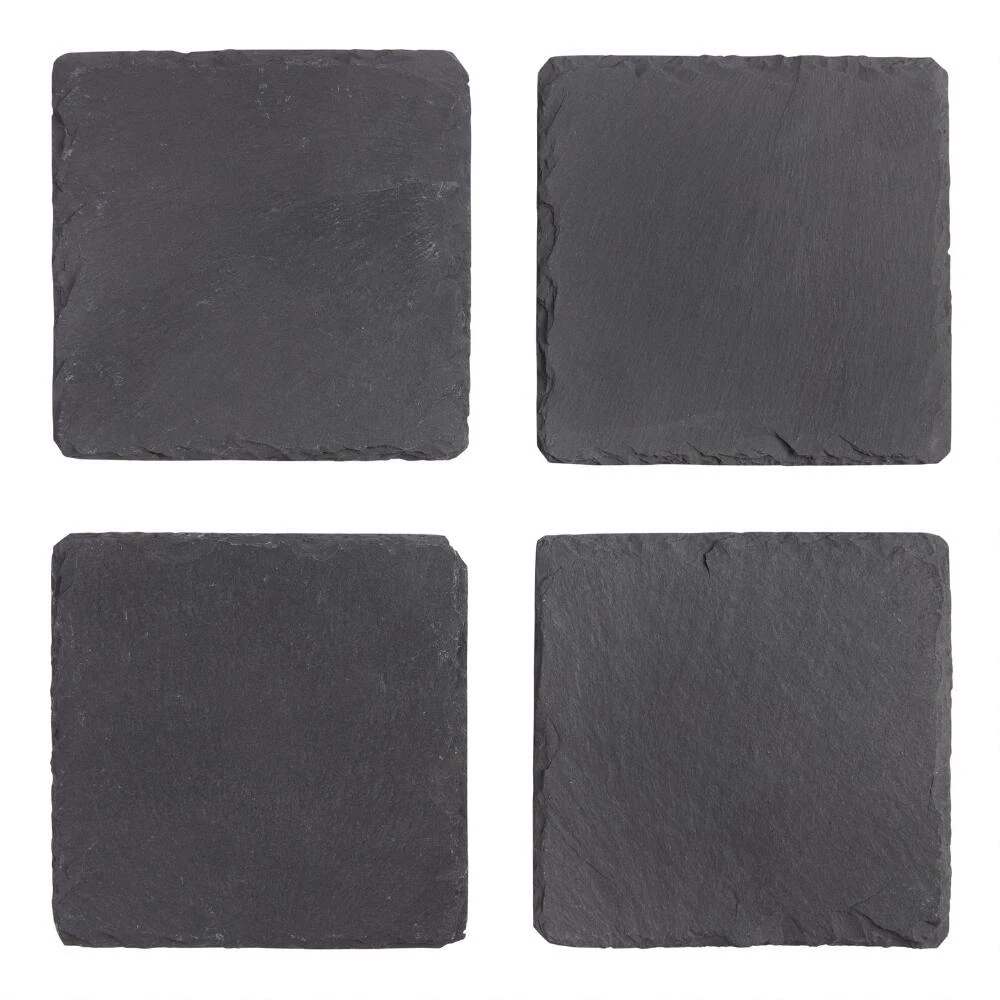 Add the organic look and texture of stone to your table with our exclusive square coasters. Crafted of natural slate, these unique coasters can even be written on with chalk to identify specialty drinks or personalize for party guests.