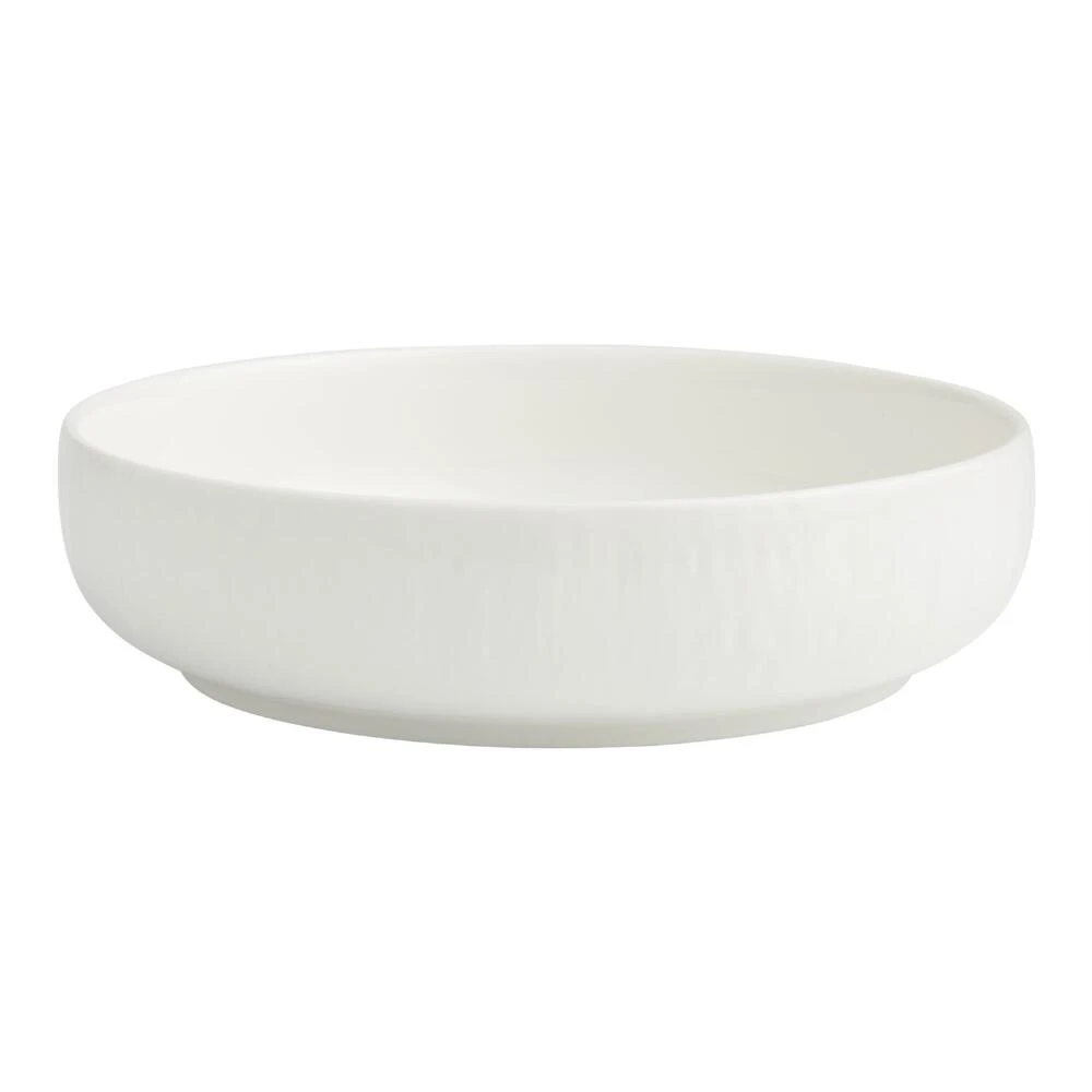 The modern sophistication of our Stella shallow bowl is highlighted by the wavy texture that ripples through its sleek and glossy white finish. A versatile soup and pasta bowl for everyday dining and entertaining, it lends an understated dimension to your table setting and is easy to pair with both neutral and brightly patterned dishware.