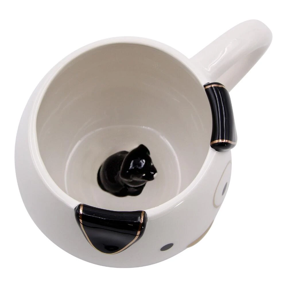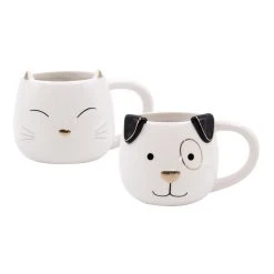 Who let the cat out of the bag – and into the mug? You’re in the doghouse now! Just as cute as can be, our figural mug comes in the shape of either a cat or a dog, delightfully detailed with a sweet face and metallic gold accents. Inside, you’ll discover a little element of surprise when you reach the bottom of your beverage.