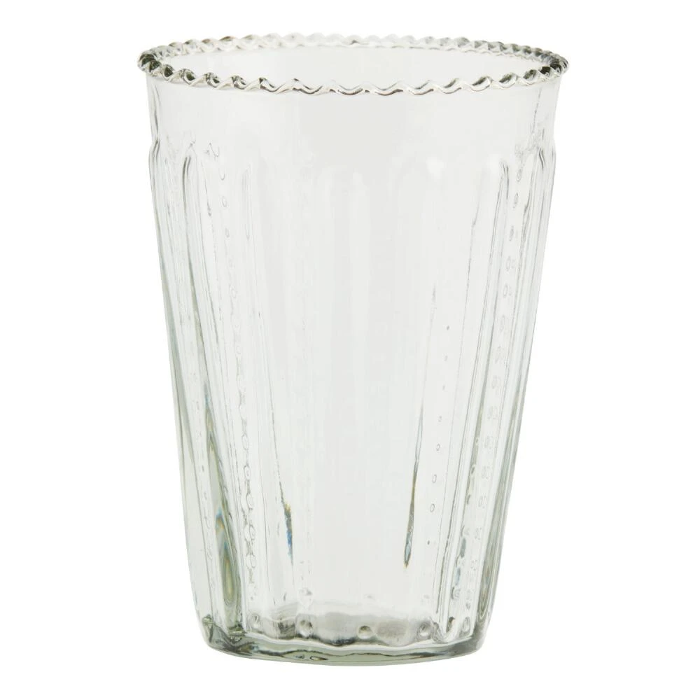 Originally inspired by traditional chai tea glasses, our highball glass is textured with subtle ridges and vertical rows of dots This sophisticated glass has a weighty feel that makes it a versatile vessel for a Bloody Mary, tequila sunrise and more.