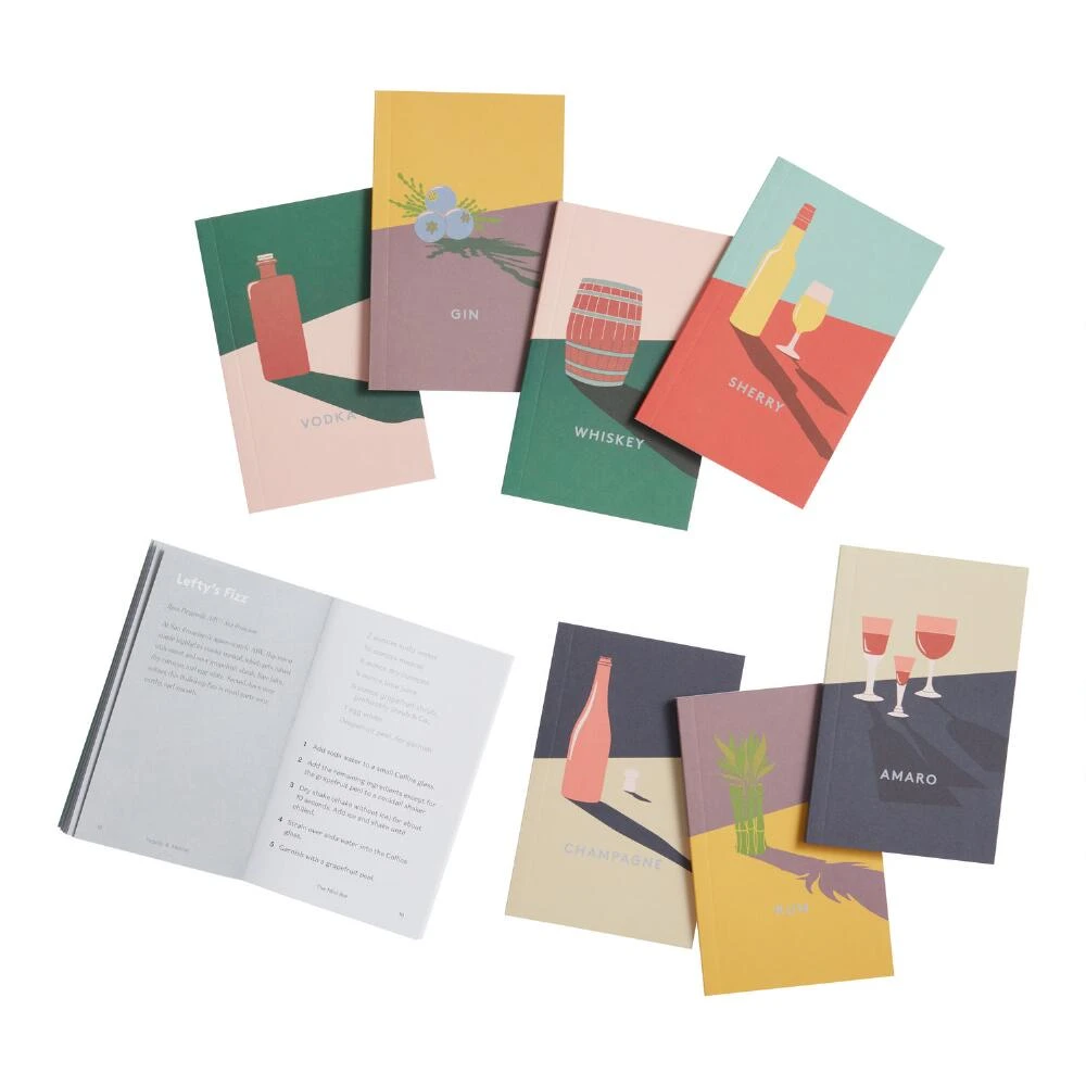 - 8-Piece includes whisky, rum, gin, vodka, tequila, champagne, sherry and amaro recipe books