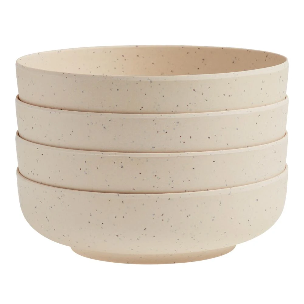 Made from bamboo fiber and recycled coffee grounds, these bowls offer a sustainable alternative to regular dishware or plastic. A slightly speckled finish gives these pieces an artsy, handmade look, and they’re made with BPA-free melamine for added break resistance. Perfectly suited for outdoor dining, these durable bowls are available in an array of earthy tones to best suit your aesthetic.