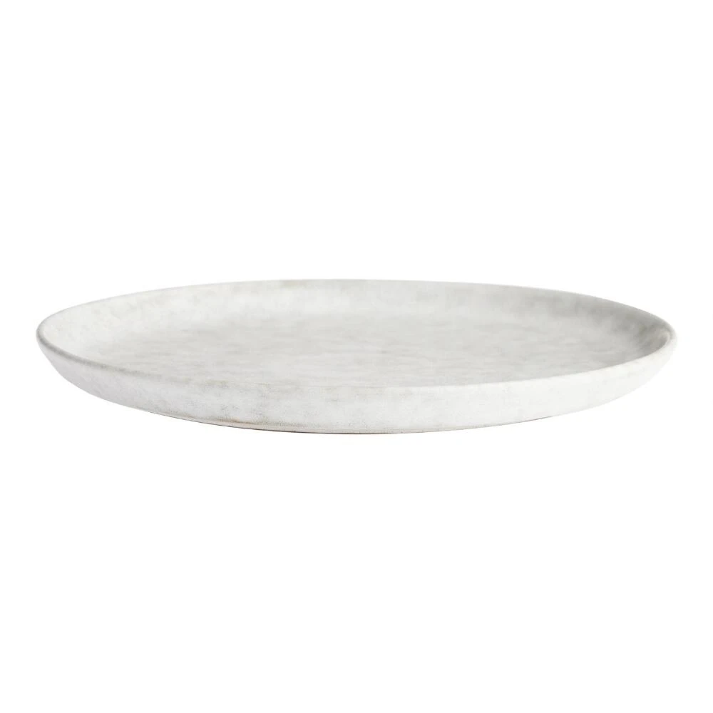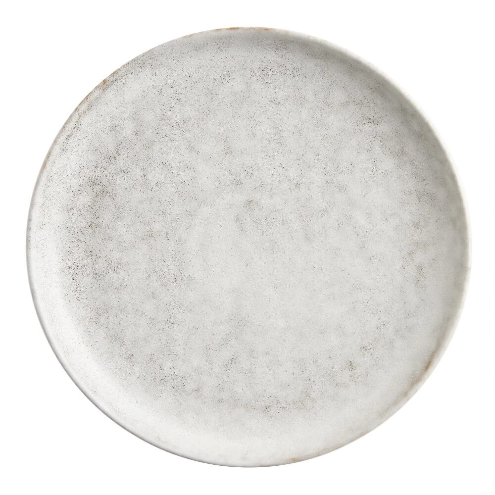 Set an inviting dining table that’s ready for gathering with this organically shaped stoneware salad plate. A modern-meets-rustic foundation for any homemade meal, it’s made with an earthy, speckled double-layer reactive glaze in grayish ivory with a brown edge that makes each piece unique from the next.