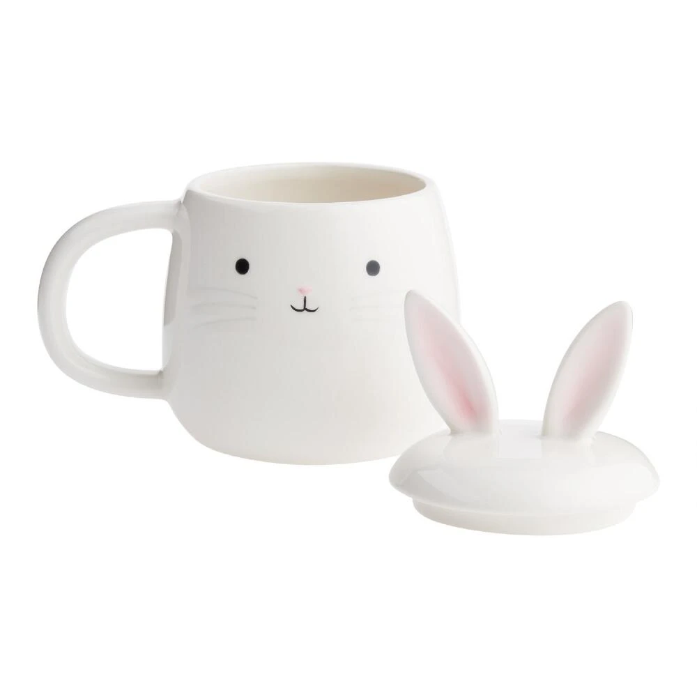 A darling way to sip your favorite warm beverage all spring long, this lidded mug is shaped like a white bunny with a precious smile and blush-pink ears. Coffee, tea and cocoa would all be toasty hot in this endearing cup.