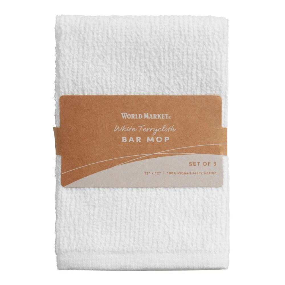 Soaking up spills is a snap with this absorbent white cotton terry cloth bar mop. Perfect for all your cleaning and wiping needs, this towel is hemmed on all sides for extra durability.