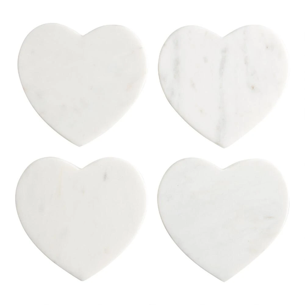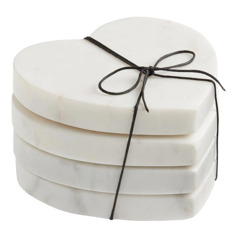 Brighten up the room and protect tabletop surfaces with our heart-shaped coasters lovingly cut from genuine white marble. Offer your guests an extra heartfelt welcome when you slip one of these charming coasters under their drink.