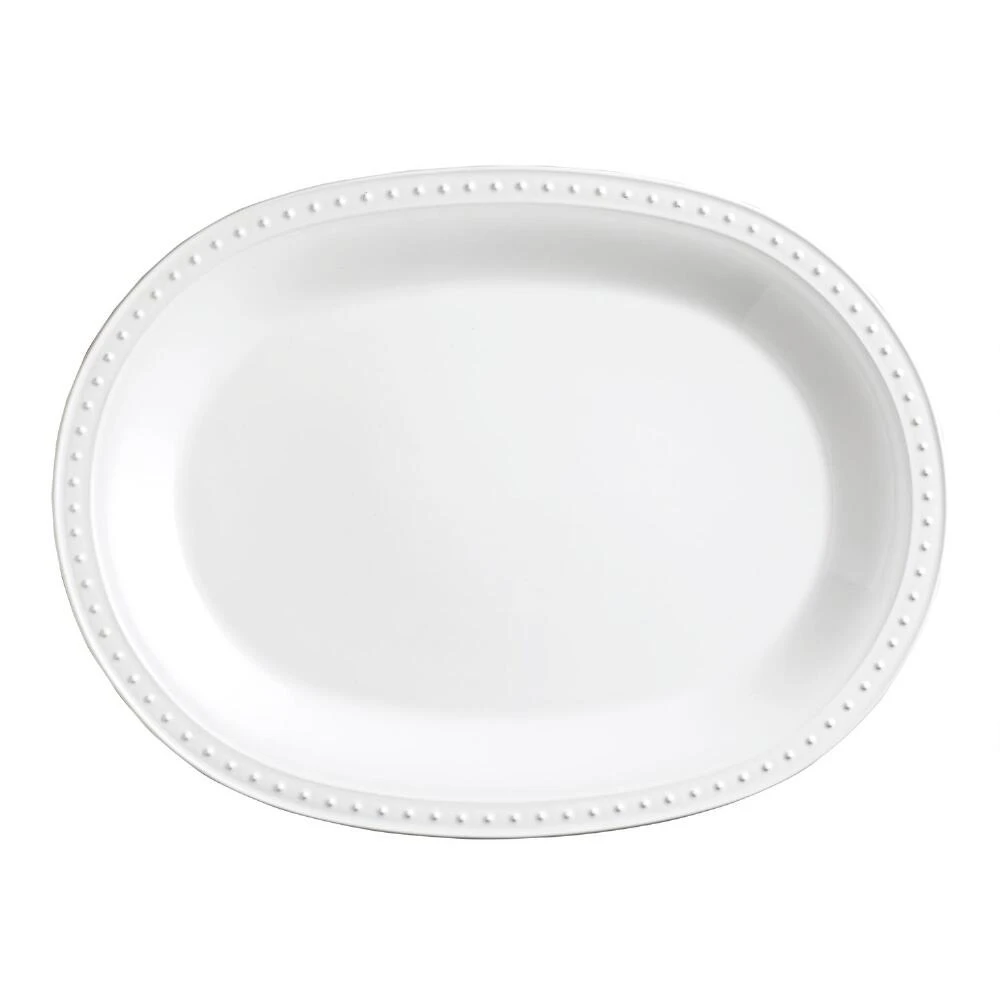 A crisp white finish and beaded rim makes our glazed earthenware serving platter the perfect choice for an everyday fine-dining experience. Fresh and versatile, you can use it with other Nantucket dishes to set a clean and classic table, or mix it with patterned serveware and dishes to add an eclectic seaside feel to your entertaining.