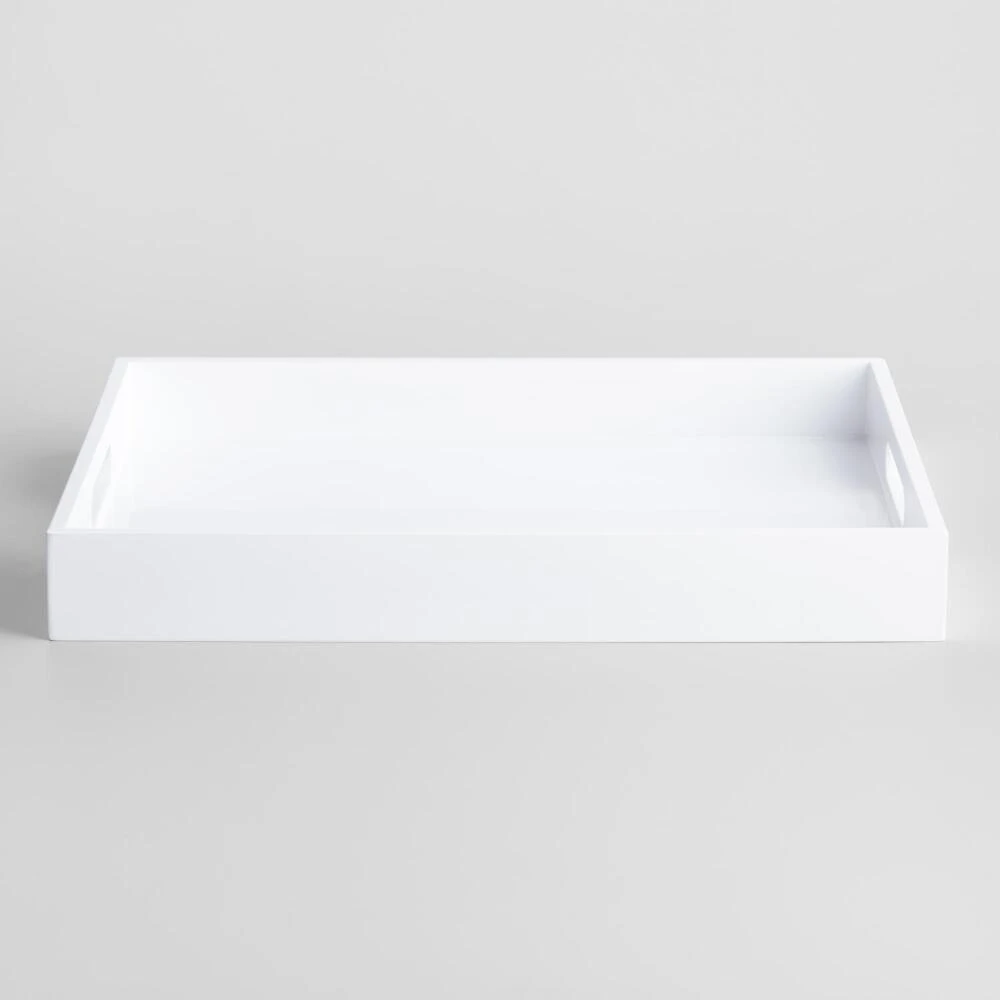 With a sleek lacquer finish, this black drink tray adds a modern look whether you’re entertaining indoors or out. Its refined design lends a contemporary feel to any ottoman, bar cart or coffee table.