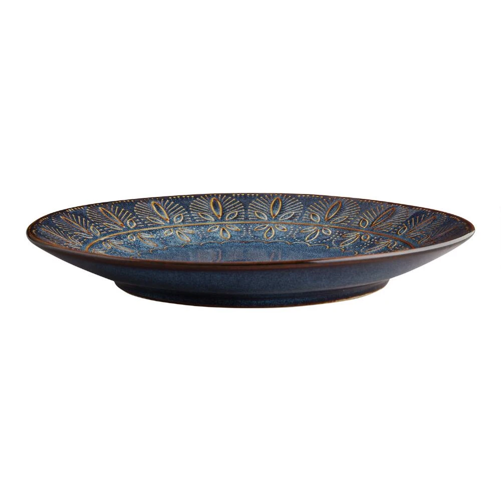 Detailed with an intricately embossed pattern around its rim, our indigo-blue Willow salad plate gives every meal a stunning yet serene flair. The reactive glaze gives each piece dynamic texture, imbuing it with unique visual interest.