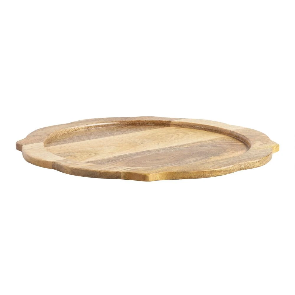Made of mango wood with a sophisticated baroque-inspired silhouette, these chargers elevate the look of your place settings. With natural variations in wood grain from piece to piece, these one-of-a-kind chargers are versatile enough for both everyday meals and entertaining.